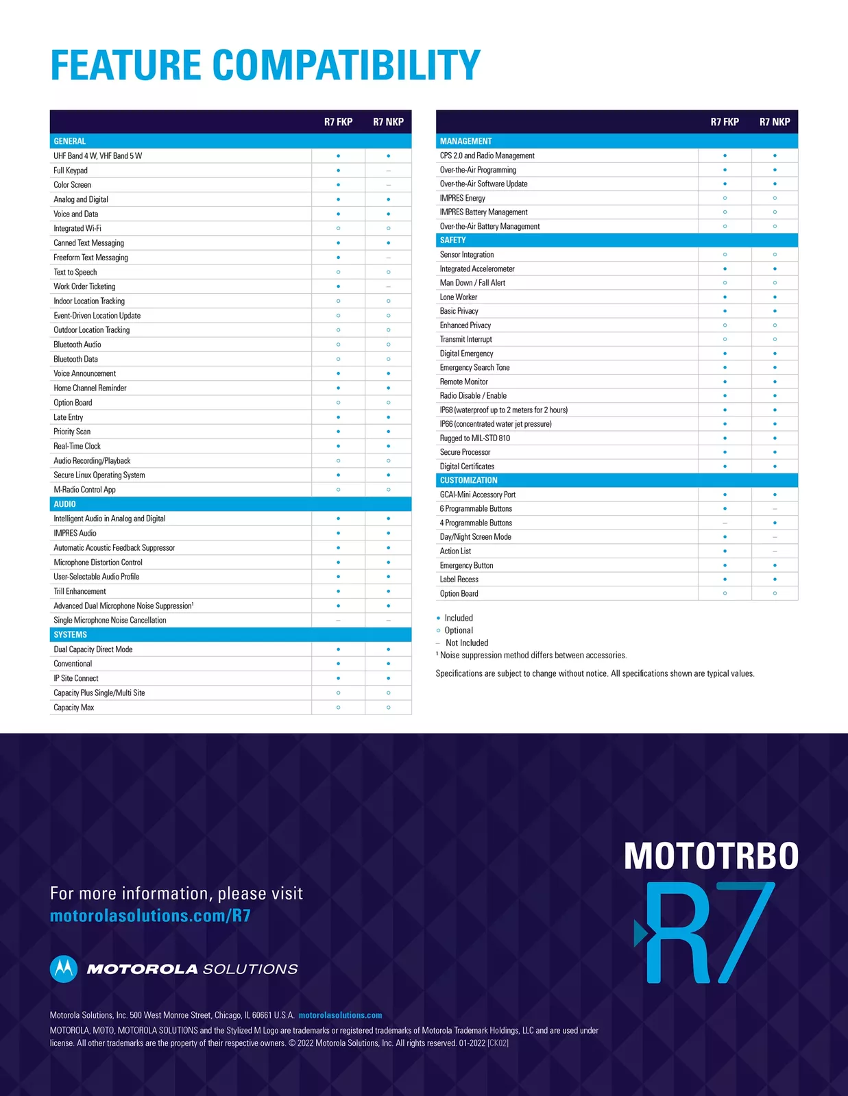 MOTOTRBO R7 的高端音频可确保您的通话响亮清晰,而其坚固的结构可适应恶劣的环境,先进的连接选项让您的员工从容应对未来的需求。